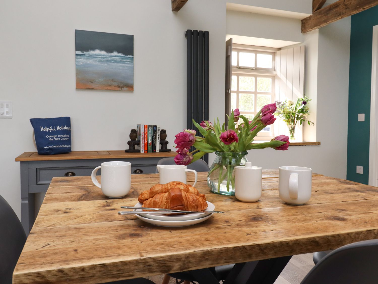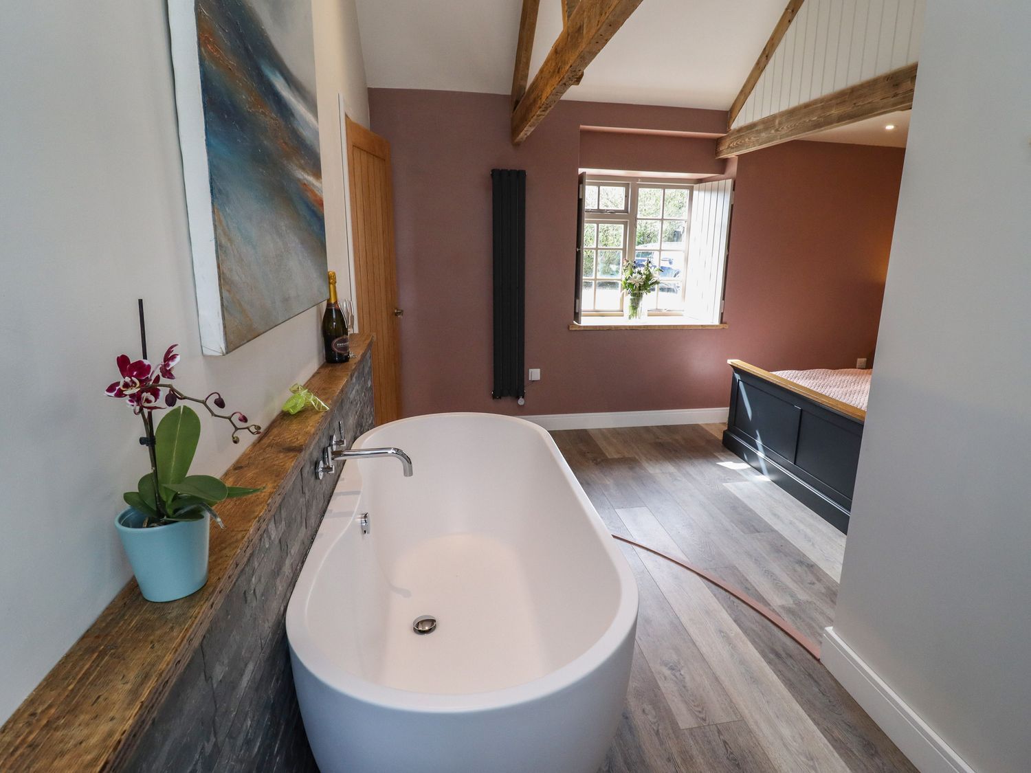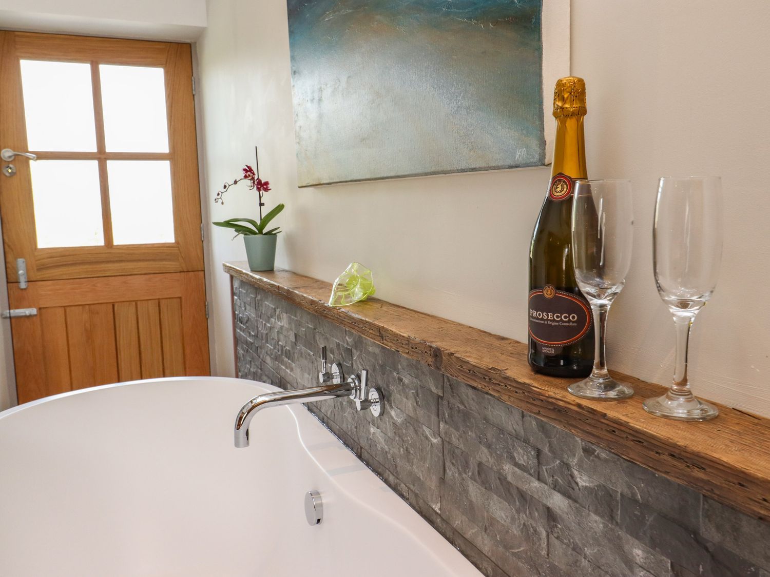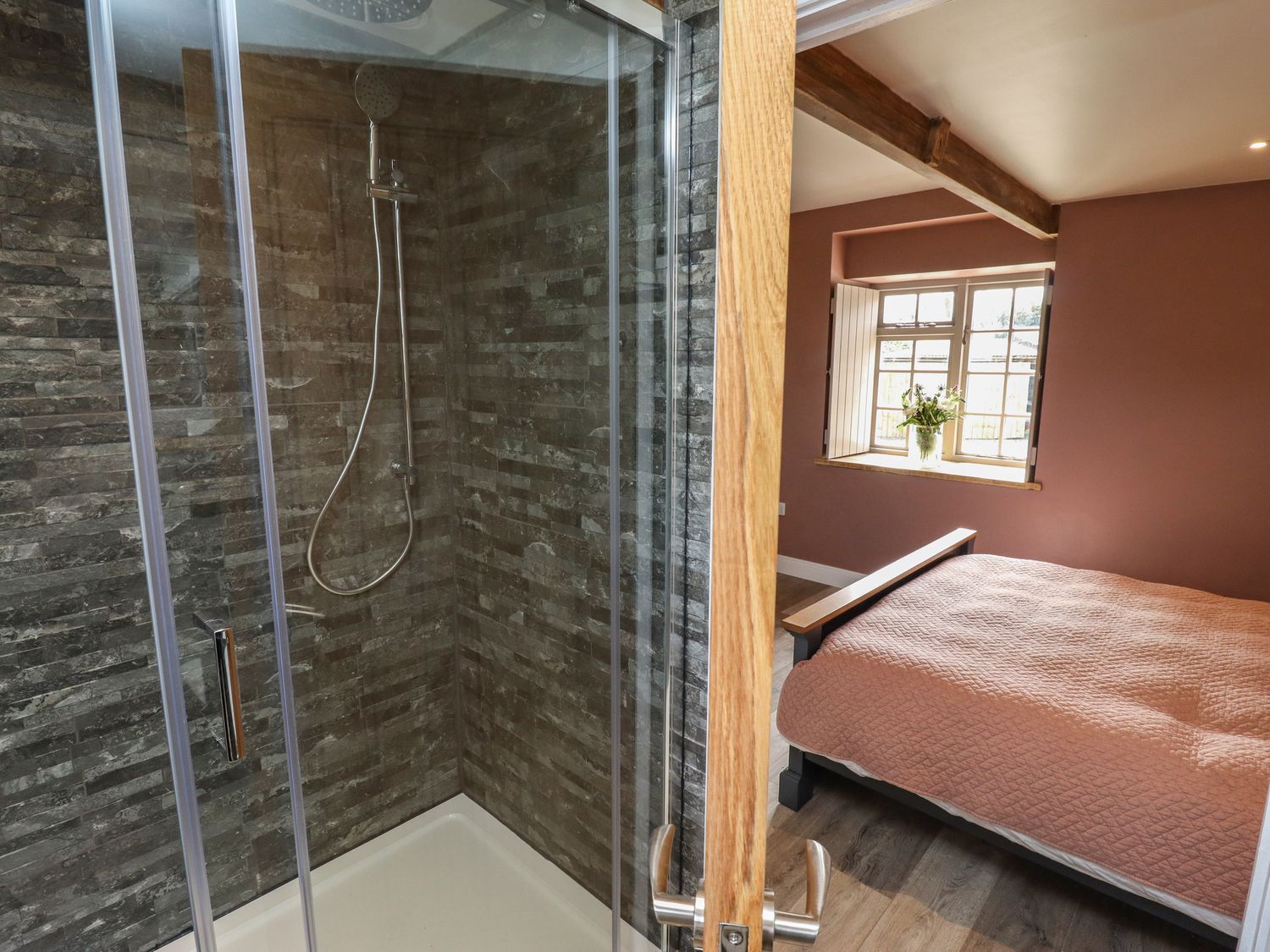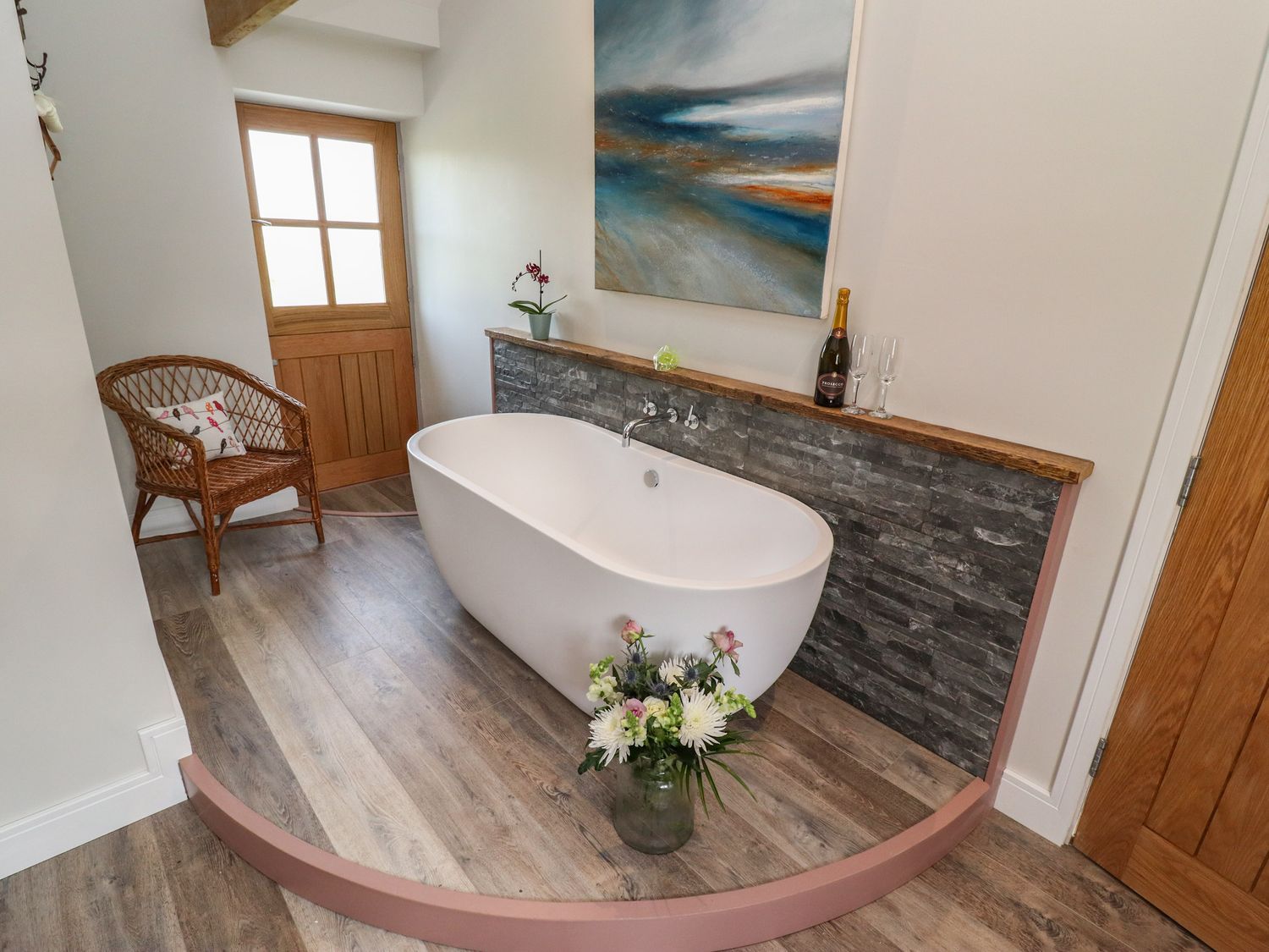 A spacious shower in the bathroom is complemented by the luxury of a freestanding bath in the bedroom from which you can gaze at the sky through the stable door.
